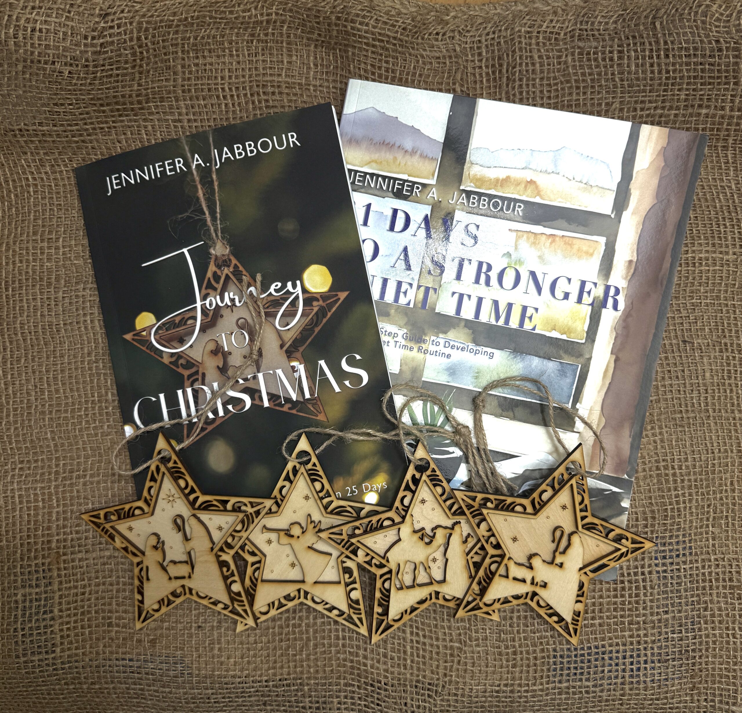 This bundle includes both devotionals—Journey to Christmas and 31 Days to a Stronger Quiet Time—along with a full set of handmade Advent ornaments.